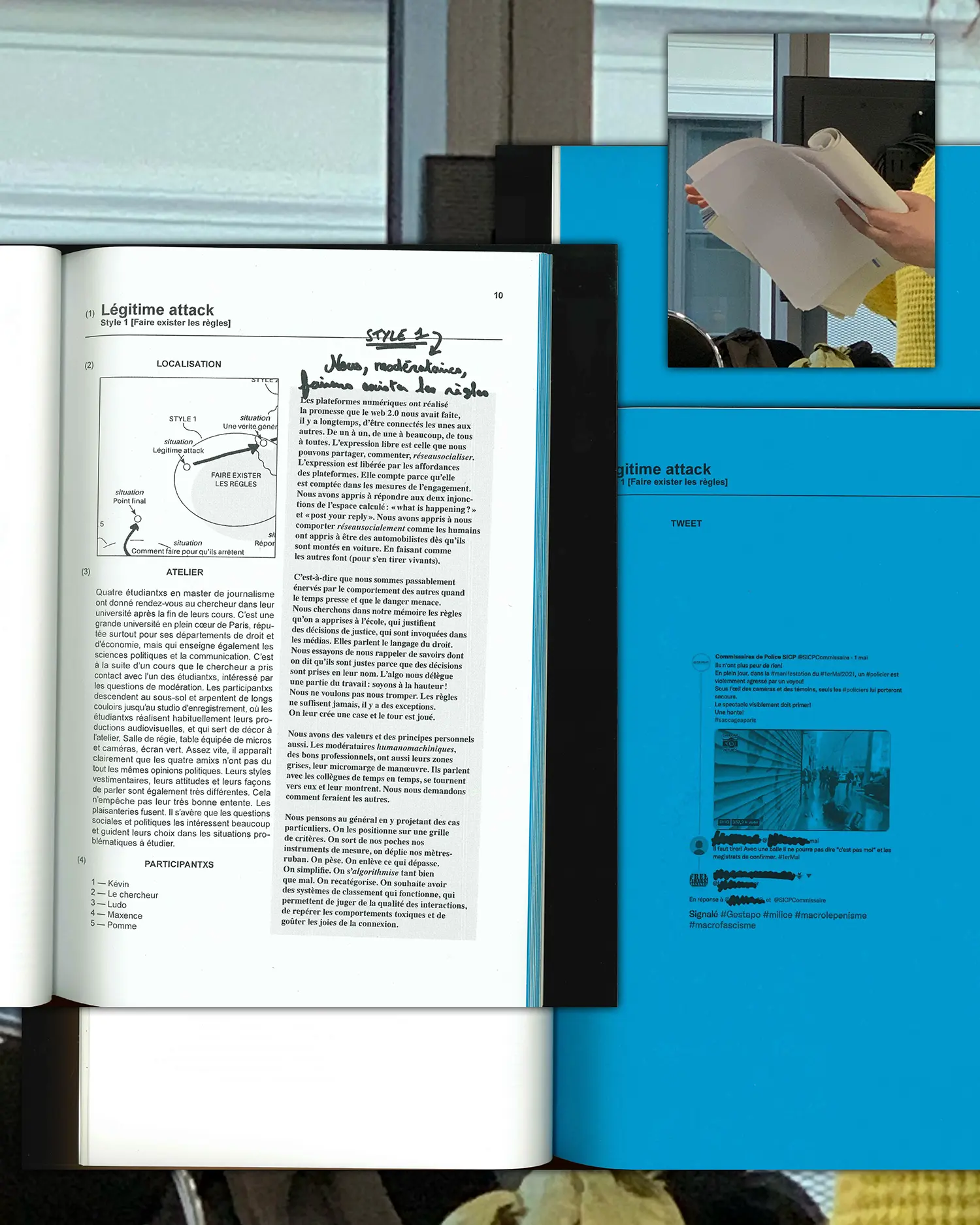 In the upcoming second phase of the project, this micro-edition will also be used to interview other moderation practitioners. It therefore also serves as a tool to collect and map the objects and technical practices involved in moderating problematic online speech.” (This publication is written in French)